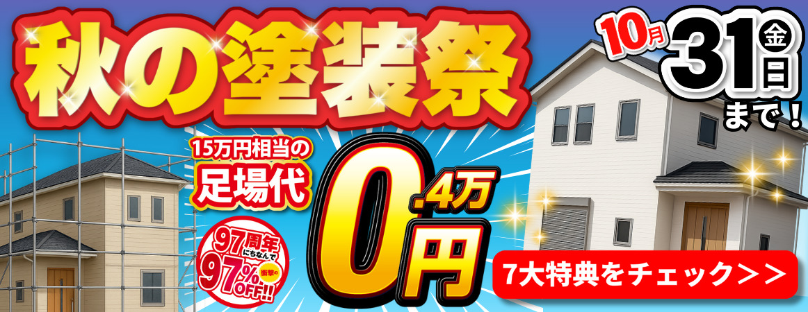 - 年内施工まだ間に合う!秋の大塗装祭!感謝の7大特典を大放出!