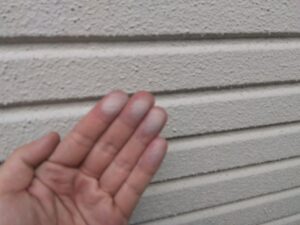 - 外壁に発生したチョーキング現象(手で触ると白い粉が付く状態)