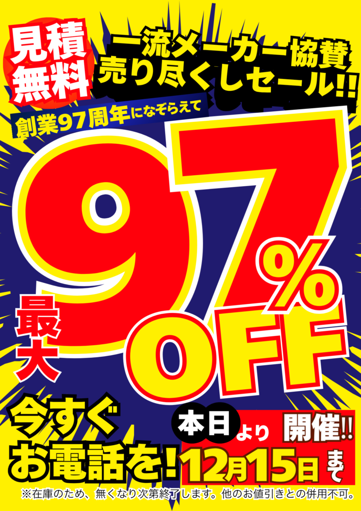 福島市・伊達市・伊達郡・二本松限定!|年内ラストチャンス!売り尽くし祭【12月15日まで開催】